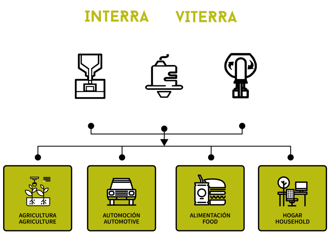 Nuestra gama de productos INTERRA® y VITERRA® funcionan en una amplia gama de aplicaciones como moldeo por inyección y soplado de películas, teniendo propiedades biodegradables y compostables.